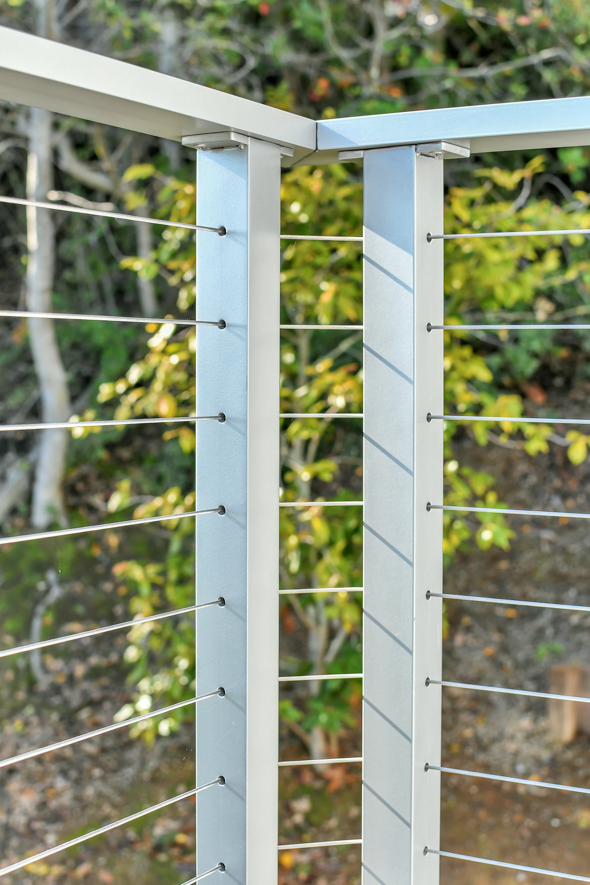 Cable railing post made from 6061 aluminum. Powder coated your color of choice. 2'' square tubing. 1/4 wall thickness